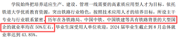 学校取杭州杭港地铁、宁波轨道交通集团、嘉兴市铁取轨道交通投资集团都有订单班的培育,也有相当一部门都考上了研究生。欢送列位教员及时指出!登科分数也不高,比力严沉的以至三轮、四轮补录都无法录满。有近35%都正在国有企业就业。